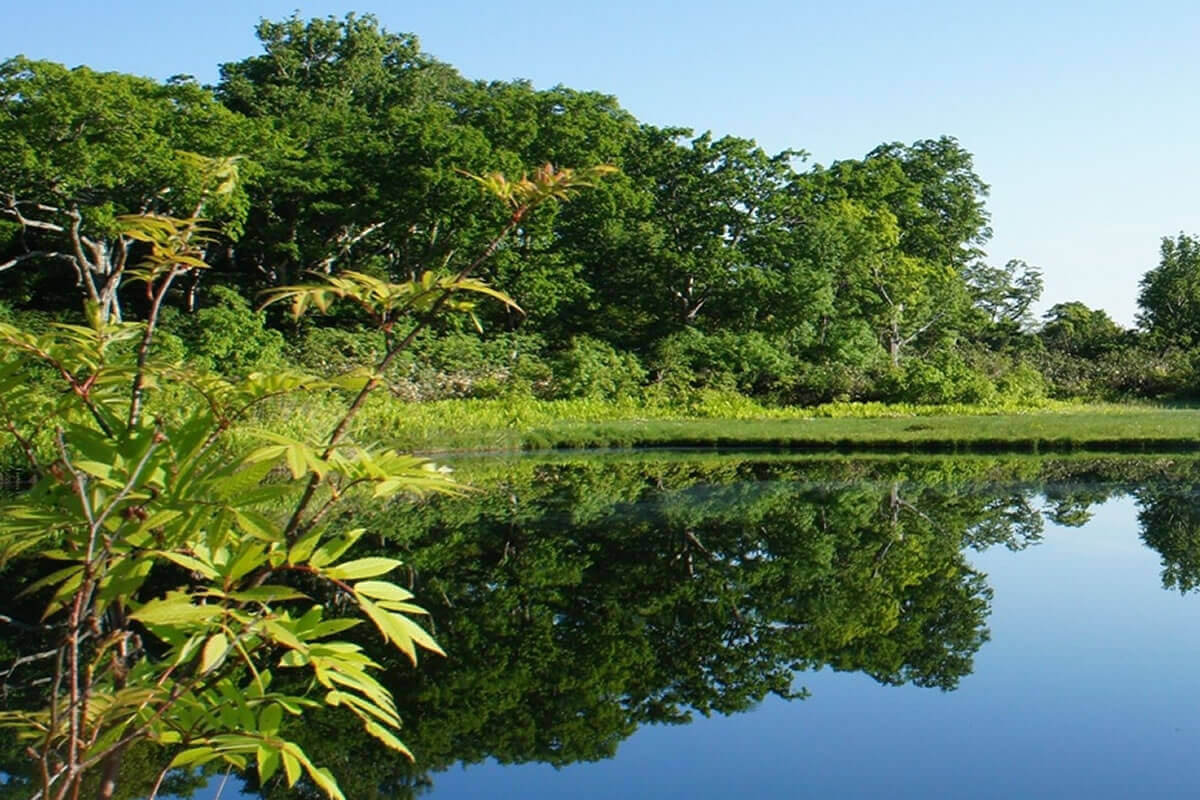 ニセコアンヌプリの北東斜面中腹に位置する高層湿原の中の沼。湿原は主に雪解け水で維持されており、対岸にはミズナラ・イタヤカエデ・ホオノキなどの巨木が原生に近い森林で存在。風がない穏やかな日は水面に周囲の景色が映し出され、鏡の様な光景に。沼の浮島は風で少しずつ移動しています。