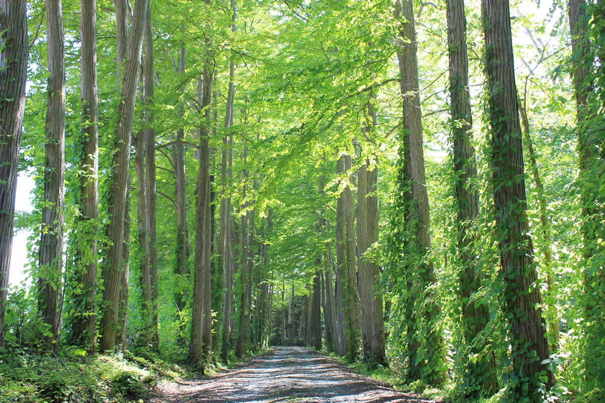 真狩樹木園の入り口に植えられ、春から夏にかけて淡い緑色、秋は黄色のトンネルに変わります。昭和6年に植えられ、昭和43年「北海道の美林」に指定。木の近くに立つと甘い香りを感じます。